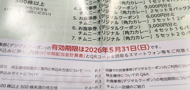 0 国内株式 / 株主優待 2025年12月14日 by wataridori · Published 2025年12月14日 · Last modified 2025年12月15日 チムニーから株主優待到着! はなの舞でまた飯を食おう! 電子化されているため間違って捨てるとこだ...