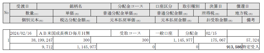 アライアンス・バーンスタイン・米国成長株投信Dコース毎月決算型ちゃん、配当300円サンキュー♪