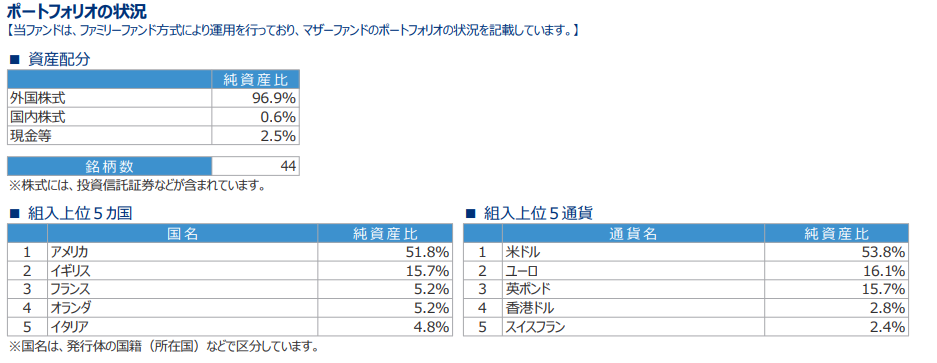 やはり最近の中国の不調から組み入れ上位5か国から香港が消えてオランダが入っている。