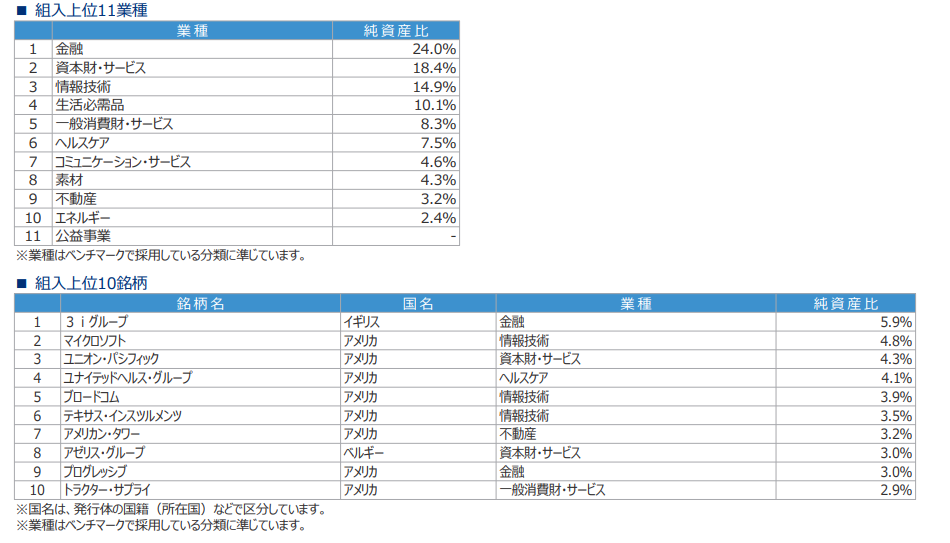 組み入れ上位銘柄10位が入れ替わっている。