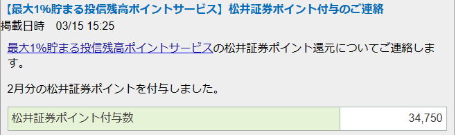 0 5月分の松井証券「投信残高ポイントサービス」が適用されました。 2024年5月16日 by wataridori · Published 2024年5月16日 · Last modified 2024年6月23日