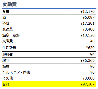 特別費2つを除けばいつもの生活費とそんなに変わらないかな。