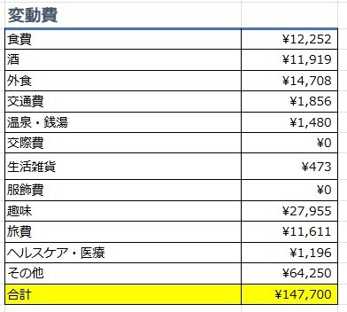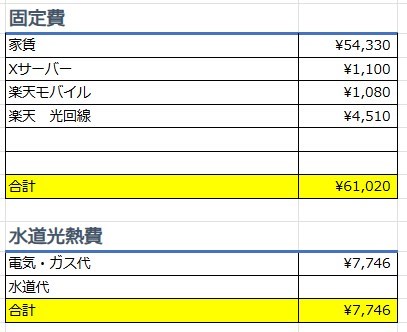 アパートの更新費用が発生したため¥61,250の臨時出費発生。