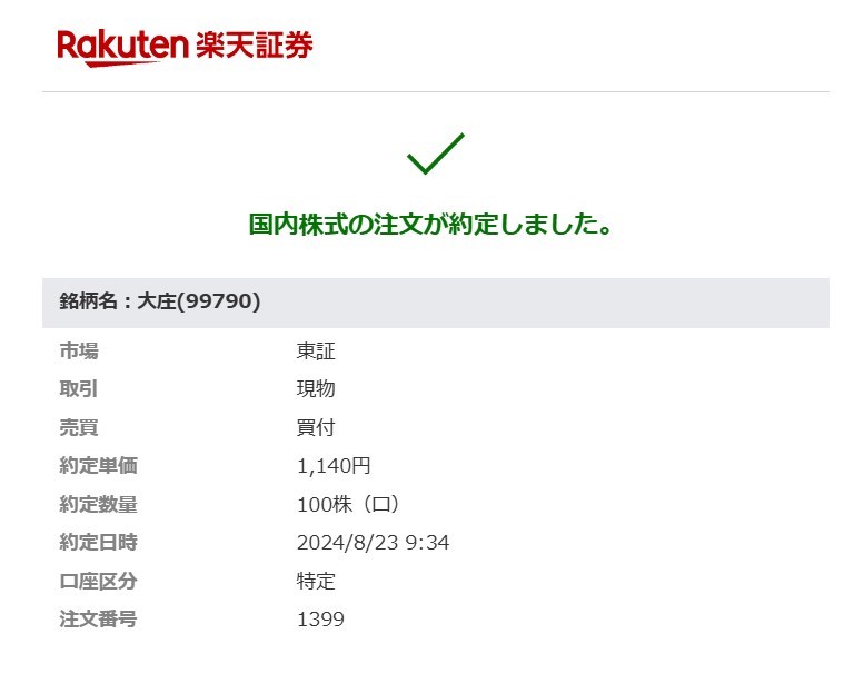 食事券目的で大庄を100株購入! by wataridori · 2024年8月23日 大衆割烹『庄や』『日本海庄や』など 権利確定月:2月、8月 100株で3000円食事券×年2回の6000円分。 調べたら東武動物公園駅前にあったわ。 いいぞ、いいぞ~