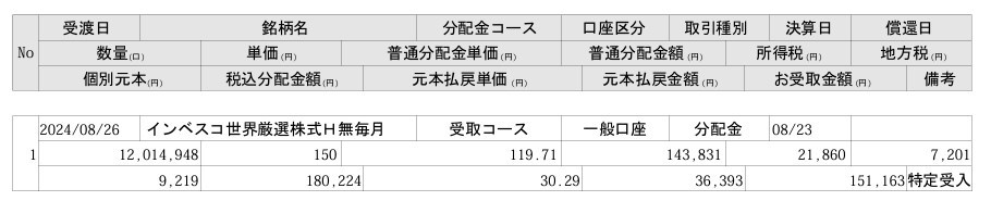 インベスコ 世界厳選株式オープン<為替ヘッジなし>(毎月決算型)ちゃん、配当150円キタ――(゚∀゚)――!!