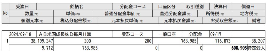 アライアンス・バーンスタイン・米国成長株投信Dコース毎月決算型、配当200円!!!