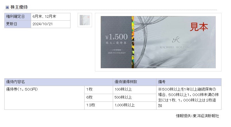 きちりホールディングス100株購入!