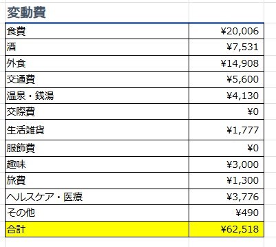 変動費に関しては特に無駄遣い等はしていないので、先月より大幅に圧縮された。