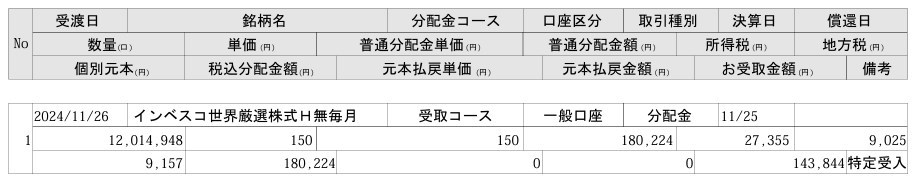 インベスコ 世界厳選株式オープン<為替ヘッジなし>(毎月決算型)ちゃん、配当150円キタ――(゚∀゚)――!! by wataridori · 2024年11月26日 今月も普通分配でありがてー! 今月も安定の分配金アザース(‘◇’)ゞ この安定感は強いな!
