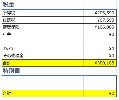 今年度(令和6年)の税金の支払いは、健保4回分41万弱と地方税22万1回の合計63万。