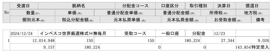 インベスコ 世界厳選株式オープン<為替ヘッジなし>(毎月決算型)ちゃん、配当150円キタ――(゚∀゚)――!! by wataridori · 2024年12月24日 今年最後もきちんと配当出て最高! ありがたや~ ありがたや~ 来年もよろしくお願いいたします~~ アザース(‘◇’)ゞ