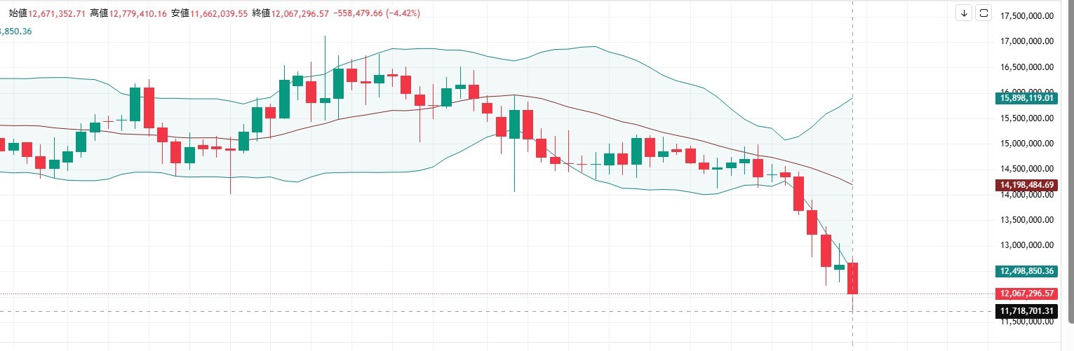 ビットコイン含む仮想通貨大暴落!1700万→1180万へ