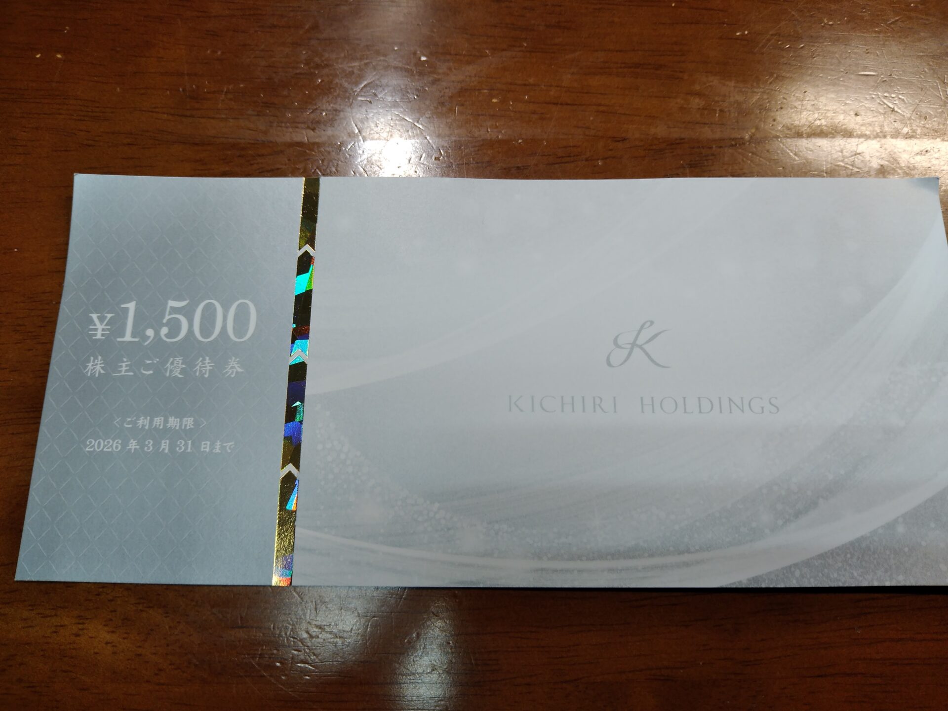 (株)きちりホールディングス(3082)から食事券到着!