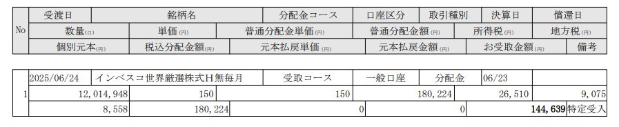 インベスコ 世界厳選株式オープン<為替ヘッジなし>(毎月決算型)ちゃん、配当150円