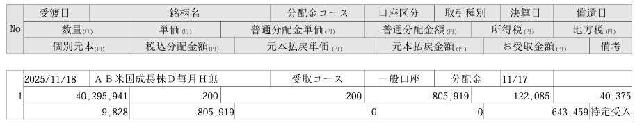 アライアンス・バーンスタイン・米国成長株投信Dコース毎月決算型 200円! by wataridori · 2025年11月18日 5か月連続で分配金200円! 実にすばらしいね! しかし税金高すぎでは? マジで自民党死ねよ。 なにが金融所得税増税だよ。 こちとらリスク取ってるんだぞ。