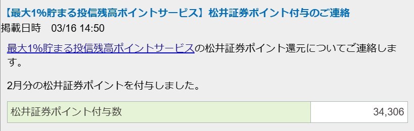 0 11月分の松井証券「投信残高ポイントサービス」が適用されました。 2024年11月15日 by wataridori · Published 2024年11月15日 · Last modified 2024年11月18日