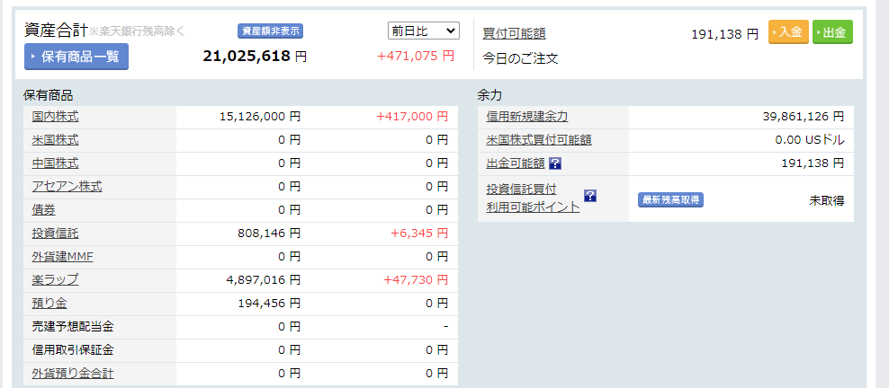 祝!資産2100万突破! by wataridori · 公開済み 2020年11月17日 · 更新済み 2024年11月12日 祝!資産2100万突破! とりあえず、ほったらかしにしてたけど久々に更新。