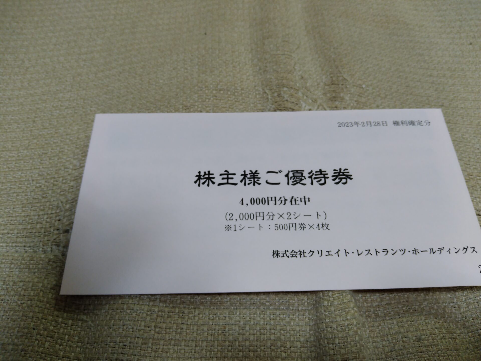 クリエイトレストラン株主優待キタ━━━━(゚∀゚)━━━━!! by wataridori · 2023年5月15日 4000円分の食事券キタ――(゚∀゚)――!! つけ麺また食べに行かなきゃ!! うぇ~い♪
