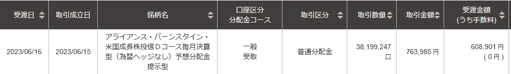 アライアンス・バーンスタイン・米国成長株投信Dコース毎月決算型ちゃん、配当サンキュー♪