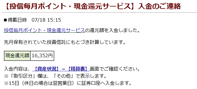 松井証券【投信毎月ポイント・現金還元サービス】入金キタ――(゚∀゚)――!! by wataridori · 公開済み 2023年7月19日 · 更新済み 2023年7月24日 今月もキャッシュバックセンキュー♪ 松井証券はマジで神! キャッシュバックサービスがマジで神! マジマンジ!