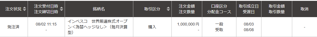 7月の支出が少なかったので100万円分追加購入。