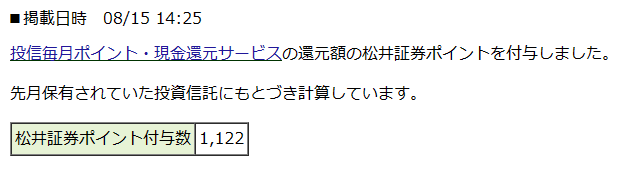 0 1月分の松井証券「投信残高ポイントサービス」が適用されました。 2024年1月15日 by wataridori · Published 2024年1月15日 · Last modified 2024年2月16日
