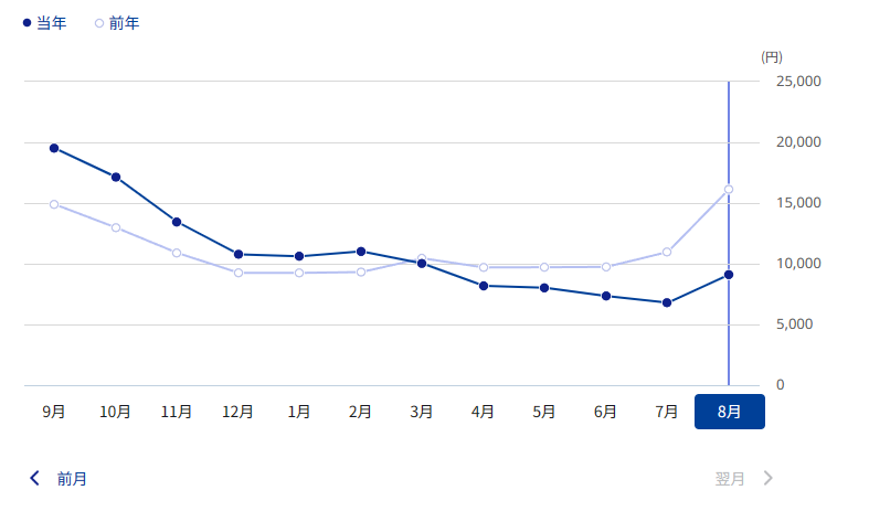 う~む、そう考えると先月と比較しても25000円以上節約してるな。