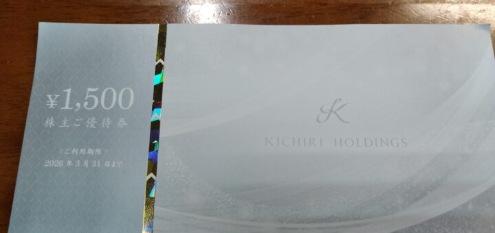 0 国内株式 / 株主優待 2025年3月6日 by wataridori · Published 2025年3月6日 (株)きちりホールディングス(3082)から食事券到着! 初の株主優待!1500円分! ハンバーグ屋とかやってるところ。 本業...