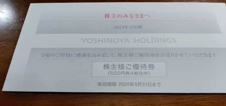 0 国内株式 / 株主優待 2023年11月10日 by wataridori · Published 2023年11月10日 吉野家の株主優待券が到着 これで特盛が食えるぜ! 最近吉野家もあまり行かなくなったから(FIR...